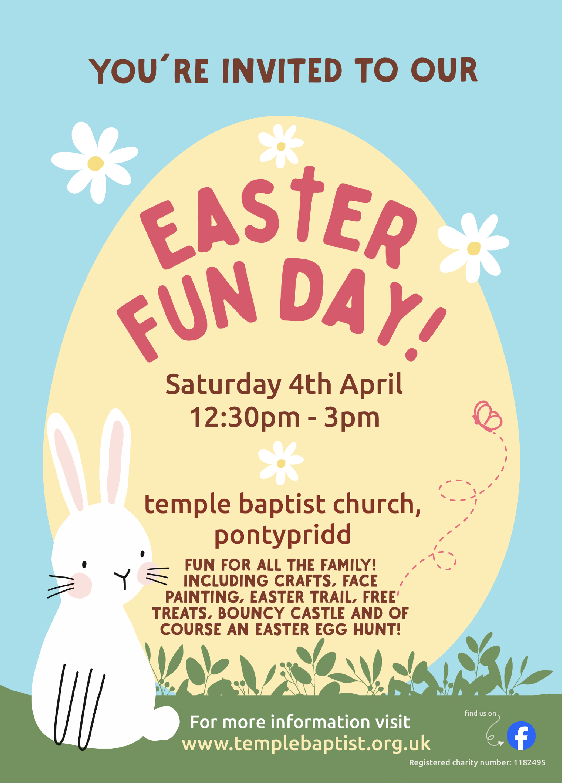 easter fun day Saturday 4 April 2026 12:30 15:00 Temple Baptist Church Gelliwastad Road Pontypridd, Wales, CF37 United Kingdom (map) Google Calendar ICS